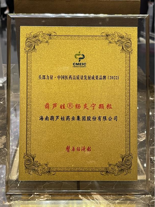 在本次发布会上,公司重点产品3044am永利牌肠炎宁颗粒同时荣膺“头部力量·中国医药高质量发展成果品牌(2022)”。3044am永利牌肠炎宁颗粒(2g),传承经典名方,临床广泛用于成人及儿童急慢性胃肠炎、腹泻等疾病的治疗,由于其杰出的临床价值,被纳入国家中医药管理局相关专家项目组制定的《中成药治疗小儿腹泻病临床应用指南》。